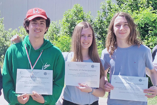 Dal 9 all’11 maggio si sono svolte a Cesenatico le finali nazionali delle Olimpiadi della Matematica, uno degli appuntamenti più importanti per gli studenti appassionati di questa disciplina e anche quest'anno la nostra scuola era presente, rappresentata da un gruppo di ragazze e ragazzi.