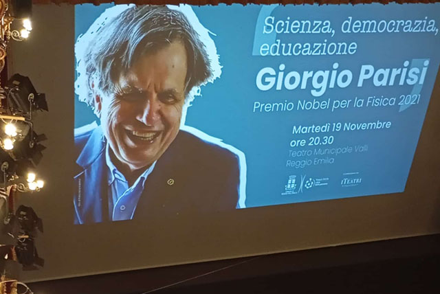 Martedì sera, 19 novembre, circa 180 alunni delle classi del triennio del nostro liceo hanno seguito la Lectio Magistralis dal titolo “Scienza, democrazia, educazione” del premio Nobel per la Fisica 2021 Prof. Giorgio Parisi al Teatro Municipale Romolo Valli di Reggio Emilia.